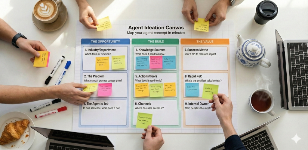 - A canvas outlining your agent (knowledge, actions, success metrics)